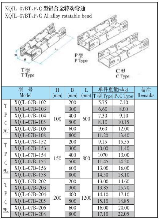 XQJL-07BT、P、C型鋁合金轉(zhuǎn)動(dòng)彎通